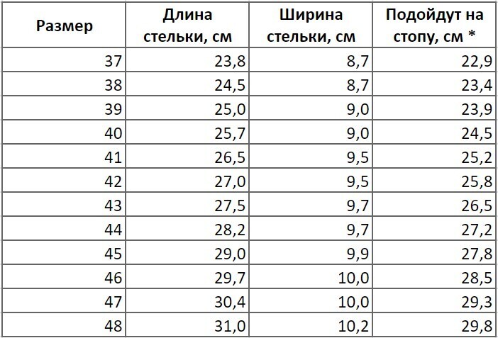 Важно измерить обе стопы – у многих длина отличается, ориентируйтесь на бОльшую!